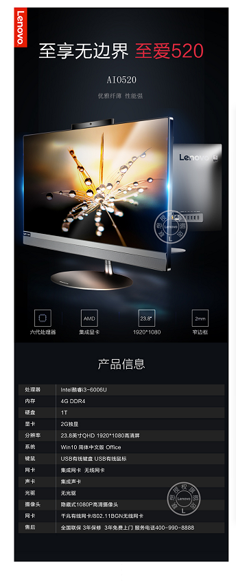 - 商品名稱:聯(lián)想(Lenovo) 一體機電腦 AIO 520-24 23.8英寸家用辦公臺式電腦:i3/8G/1T+128G 集顯銀