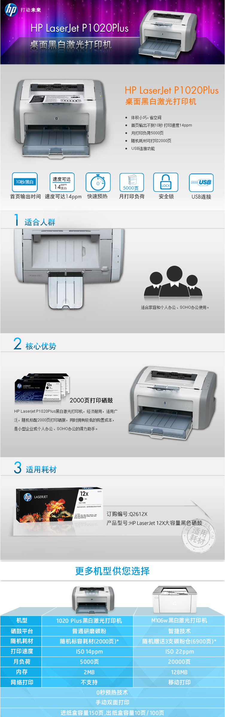 - 商品名稱:惠普(HP)LaserJet 1020 Plus 黑白激光打印機